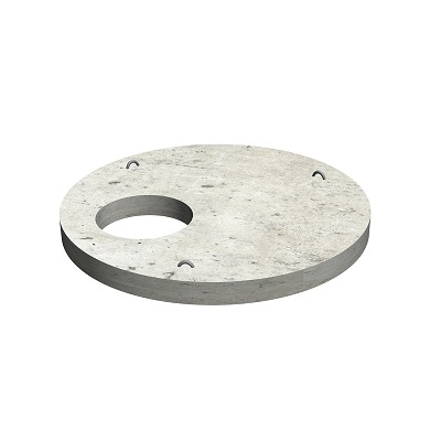 Наличие отверстия для люка. Оно может располагаться по центру или в боковых участках бетонной плиты. Отверстия бывают разных форм: круглые, квадратные, прямоугольные. Также возможно наличие двух отверстий вместо одного. Если техническое обслуживание колодца не предусматривается, отверстие может и вовсе отсутствовать.